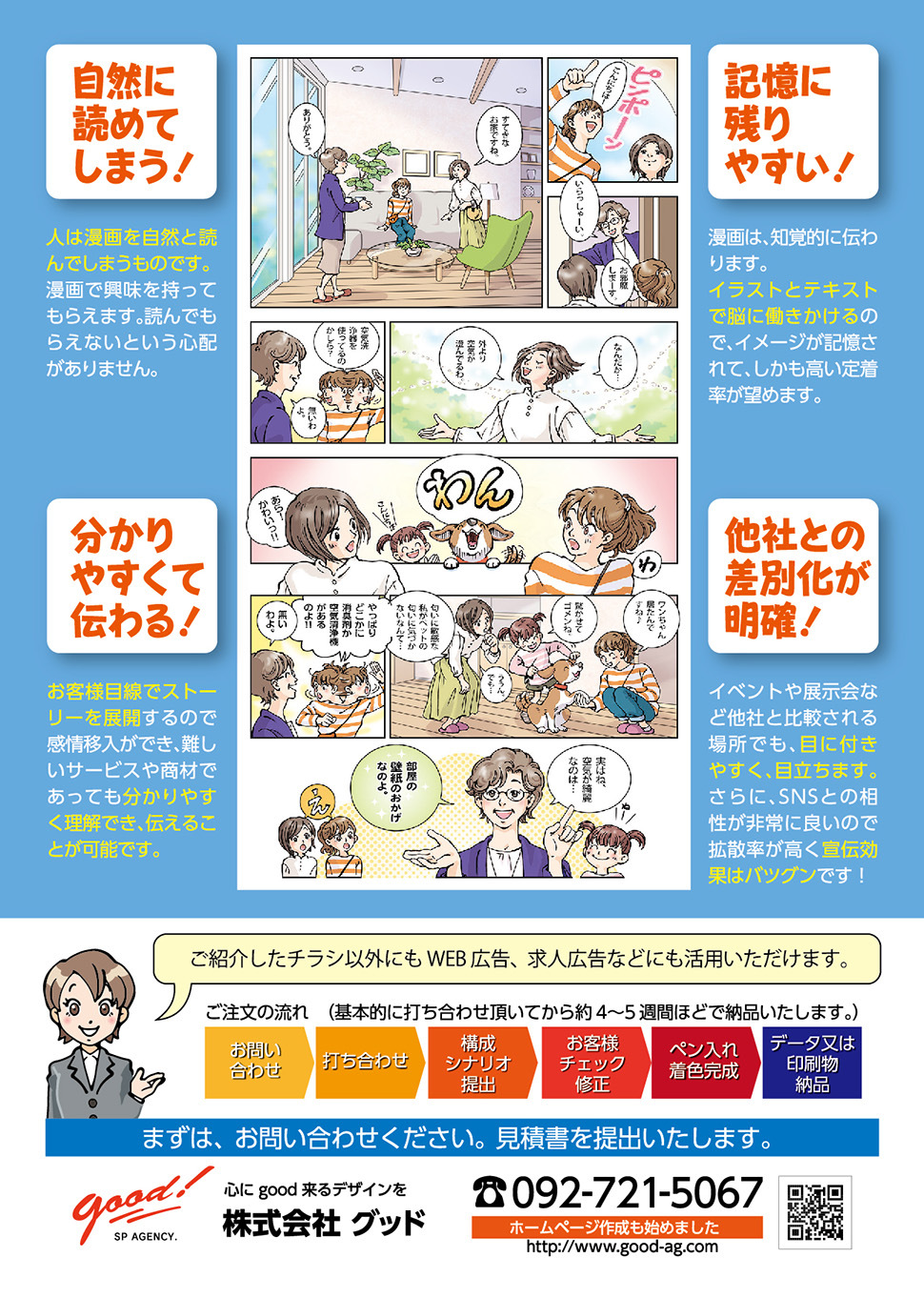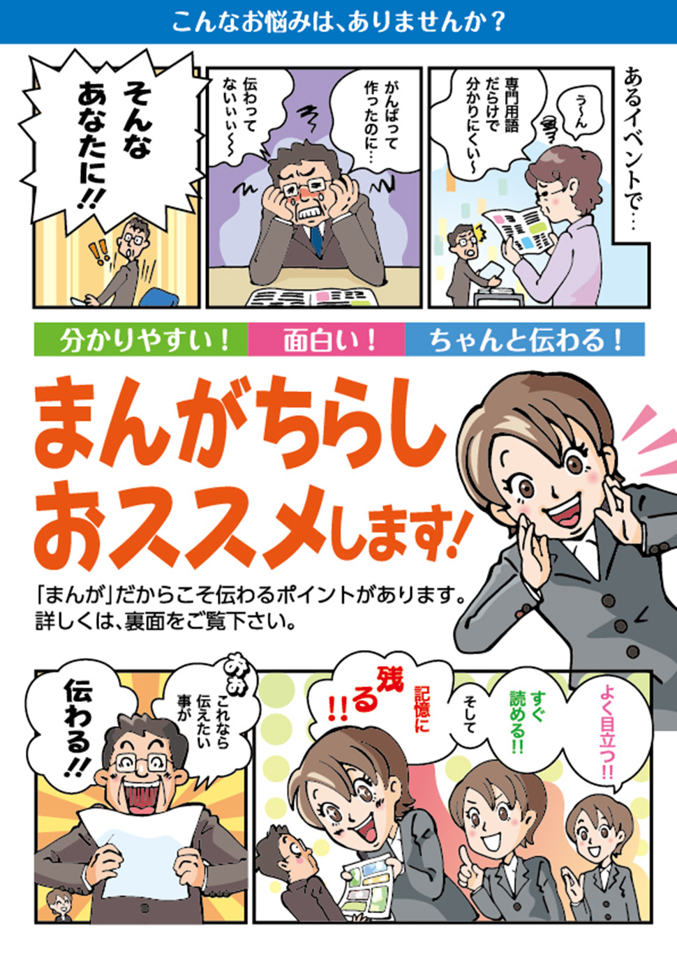 まんがチラシ以外でも会社案内・ガイドブック・ポスター・カタログ・新聞広告・Web等。